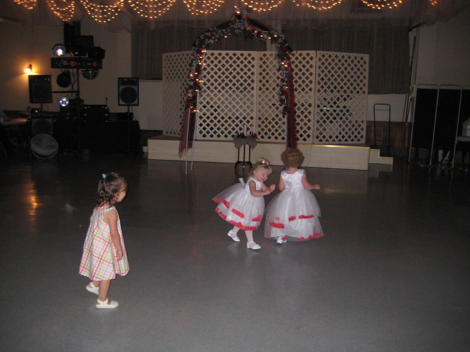 So the wedding gets started and Leila is standing on her seat and she says loudly enough that all of our row could hear her, “I am going to get married and then I will get a ring right here!” As she held up her hand in the air. Too funny.