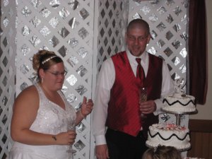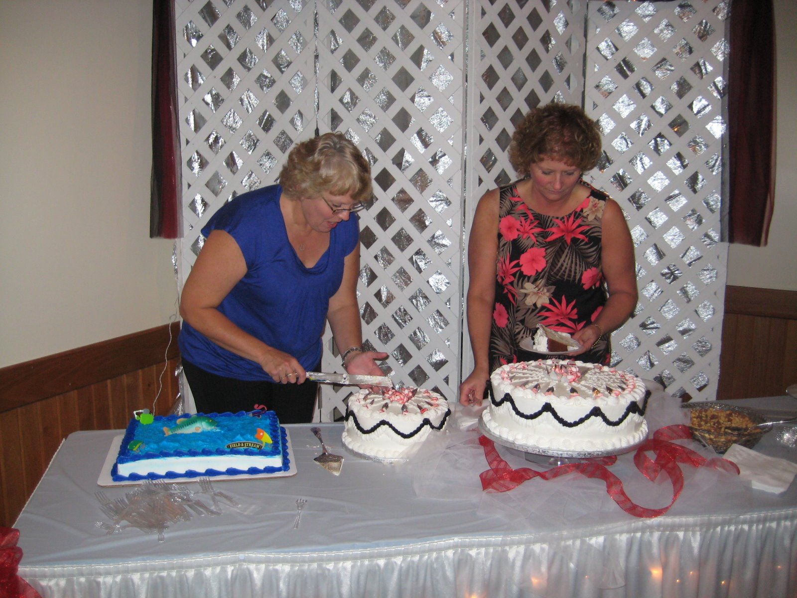 When we got to the wedding she immediately noticed the cake and had to take a look. I think while we were waiting for the wedding to start Cory had to carry her over to look at the “birthday cake” three or four times. We had to keep a close eye on her or she would have attacked the thing I am sure! The grooms cake had fish on and Leila said that it was a big scary shark.