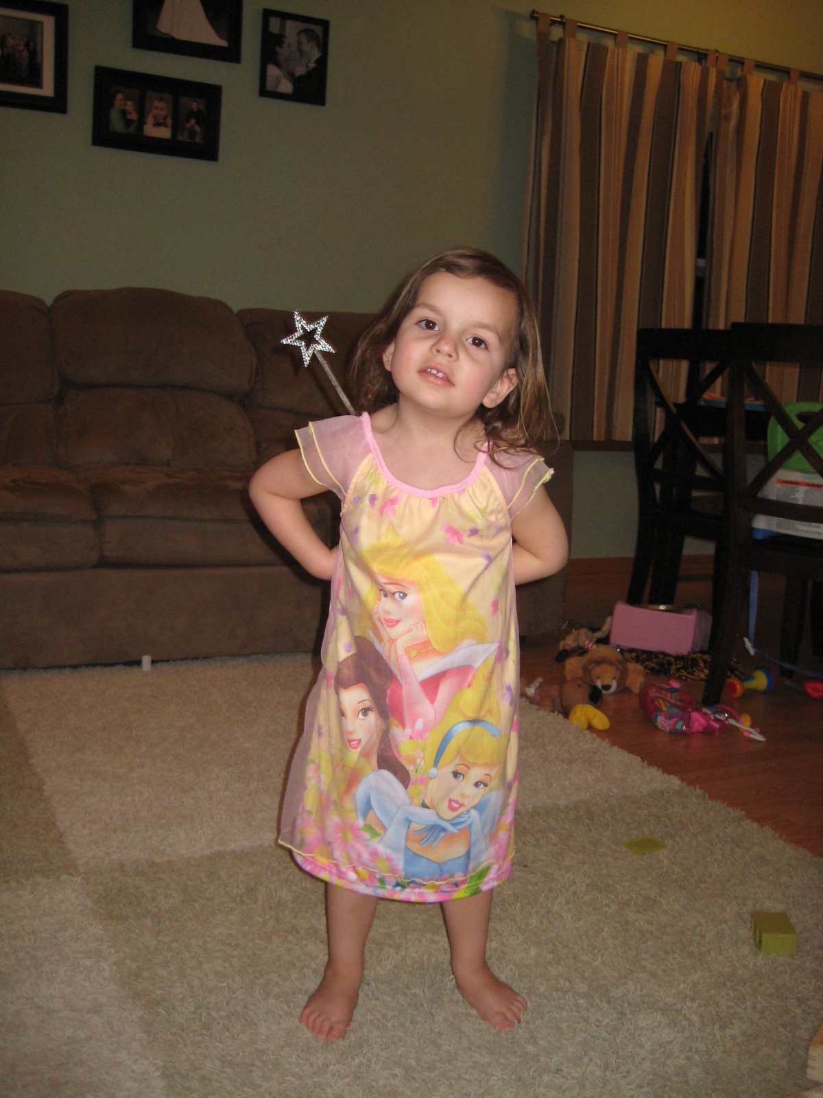 My beautiful princess trying out her new nightgown. Thank you Aunt Sheila, as you can tell, she loves it! 🙂