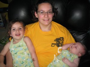 >Thea and Quincy. Quincy is Cory’s nephew Kyle’s baby boy. He is about 3 weeks old and I am sure that being next to our chunker makes him look even smaller! 😉