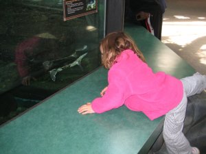 Leila and her little stuffed deer are REALLY excited about the aquarium!