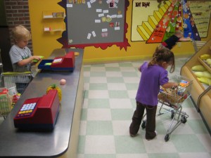 Cindy and I took the kids to the Childrens museum on a rainy day this week. They had a lot of fun shopping in the city market and Leila made me lunch at the pizza parlor. Great fun was had by all…taking 4 kids under 3 years anywhere can be a challenge, but we had lots of fun!