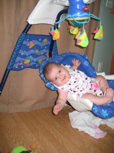 I think she is plotting her escape, so the swing is now out of the baby soothing rotation. It was nice while it lasted.