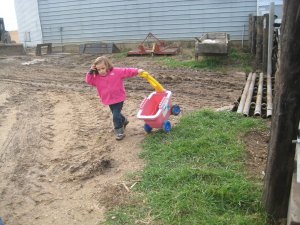 Leila ran through mud puddles, and fed cows. climbed on tractors and had a generally great time getting dirty. Good thing I had extra pants in the car!