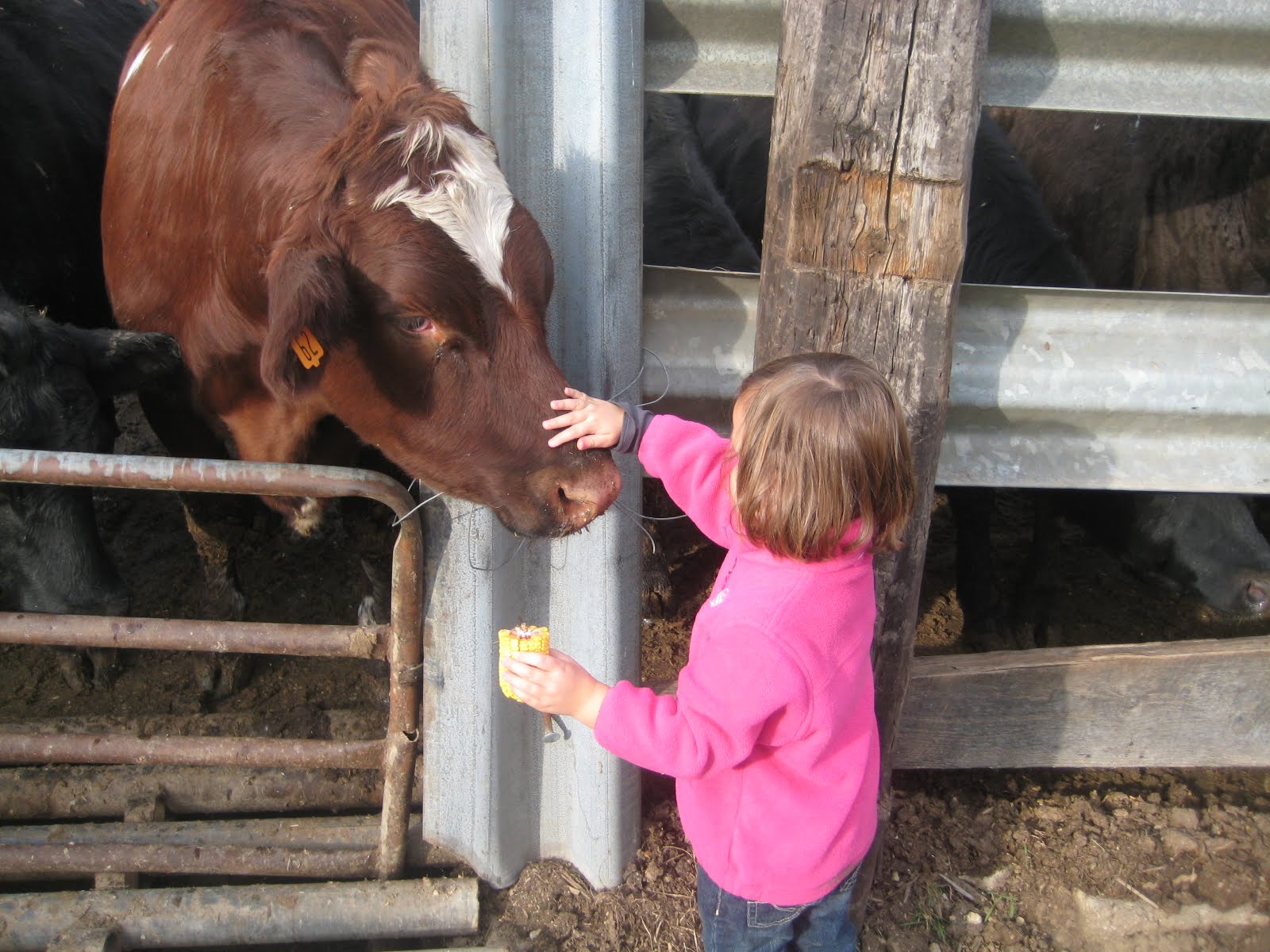 Leila ran through mud puddles, and fed cows. climbed on tractors and had a generally great time getting dirty. Good thing I had extra pants in the car!