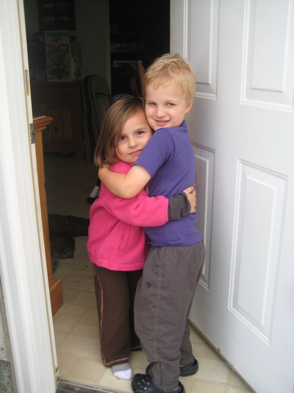 It was right about now that we started talking about going home, and Leila started to get upset. Her response was, “but Bryce is my very best friend!” It was about the cutest thing I had ever seen. Bryce was busy feeding cows so Leila walked up to him and said, “Thank you Bryce, I had so much fun with you.” He responded by reaching over and pulling Leila into a hug. Cory and I were talking on the way home about how happy we are that we had kids when Matt and Cindy were having kids. This friendship is so adorable. Who knows what the future may hold, but I hope they always get along. It will be interesting, but I am sure that they will grow up with lots of contact with one another. Matt and Cindy are great friends of ours and rank right up there with the “real” aunts and uncles, so it is inevitable. It sure looks to me like Bryce and Leila are great friends too.