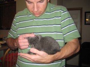 >Much to my dad’s chagrin, mom brought home a new baby kitten from Grandpa Warren’s farm. When she called from the road to tell us to put Zoey outside, I knew right away why. Zoey would eat a kitten if given the opportunity. Little Bella is quite cute, and this coming from a not cat person. Leila loves her.