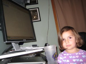 >Leila has been really into spelling lately, and she loves to type on the computer. Of course there are a lot of tricks to spelling correctly in the English language, and Cory and I are never sure if we should correct her when she spells things wrong, but phonetically. We decided that for now, phonetically will do because we don’t want to discourage her. The other night she spelled, “CATRPILR” and this one she was especially proud of, so we took a picture, “DADE”