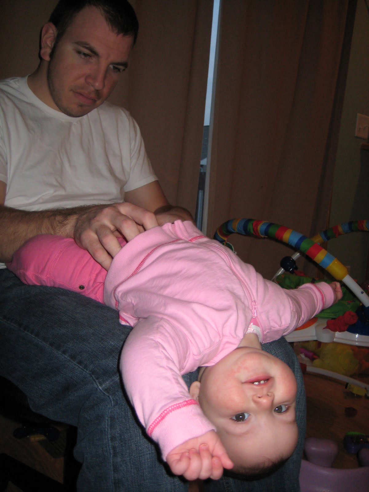 This evening Thea was exploring, crawling around while I was making dinner and as she ventured into the kitchen Cory followed behind her calling out, “Thea, where do you think you are going!?” And as he closed in on her she took off faster with a sweet baby giggle. What a big grown up girl!