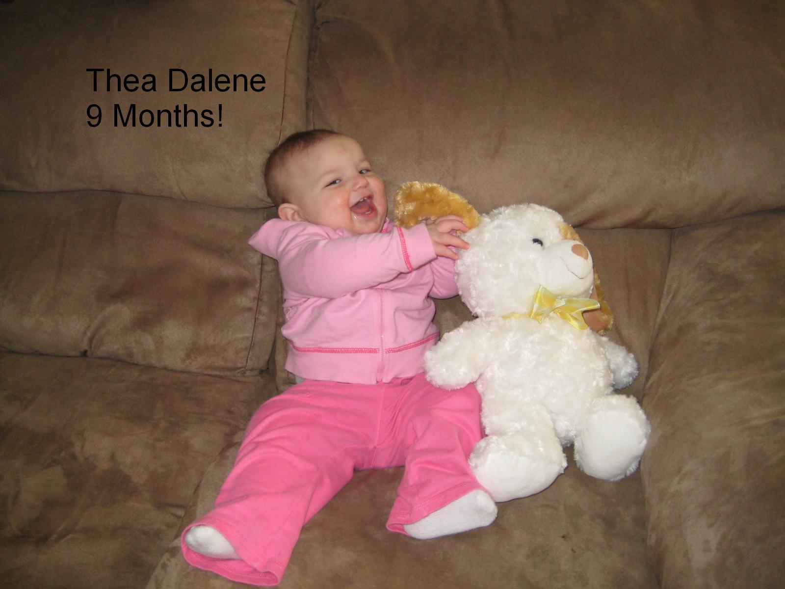 >Today Thea had her 9 month well baby check up. She got her booster for the H1N1 vaccine and barely cried at all. Thankfully Leila was able to get her booster of the mist as well and she also did awesome…the first dose didn’t go as well but with Cory there to help, she was calm and happy to escape a shot!