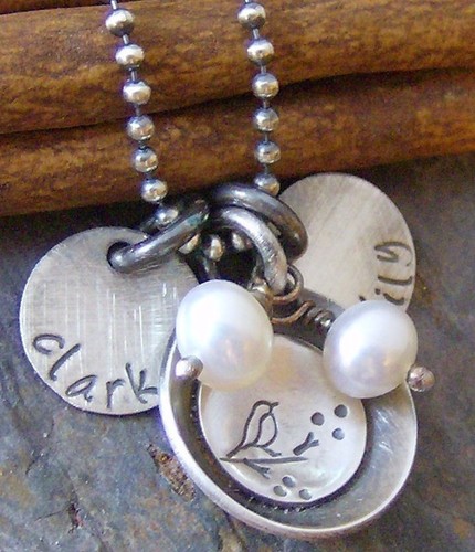I have been eyeballing mother’s jewelry for some time now. If you know me well, you know that I like anything better if it is homemade. This is why I spend too much time and money on Etsy.com. Now that I have my two girls I am feeling more complete and I would love to commemorate my “nest” with something like this.