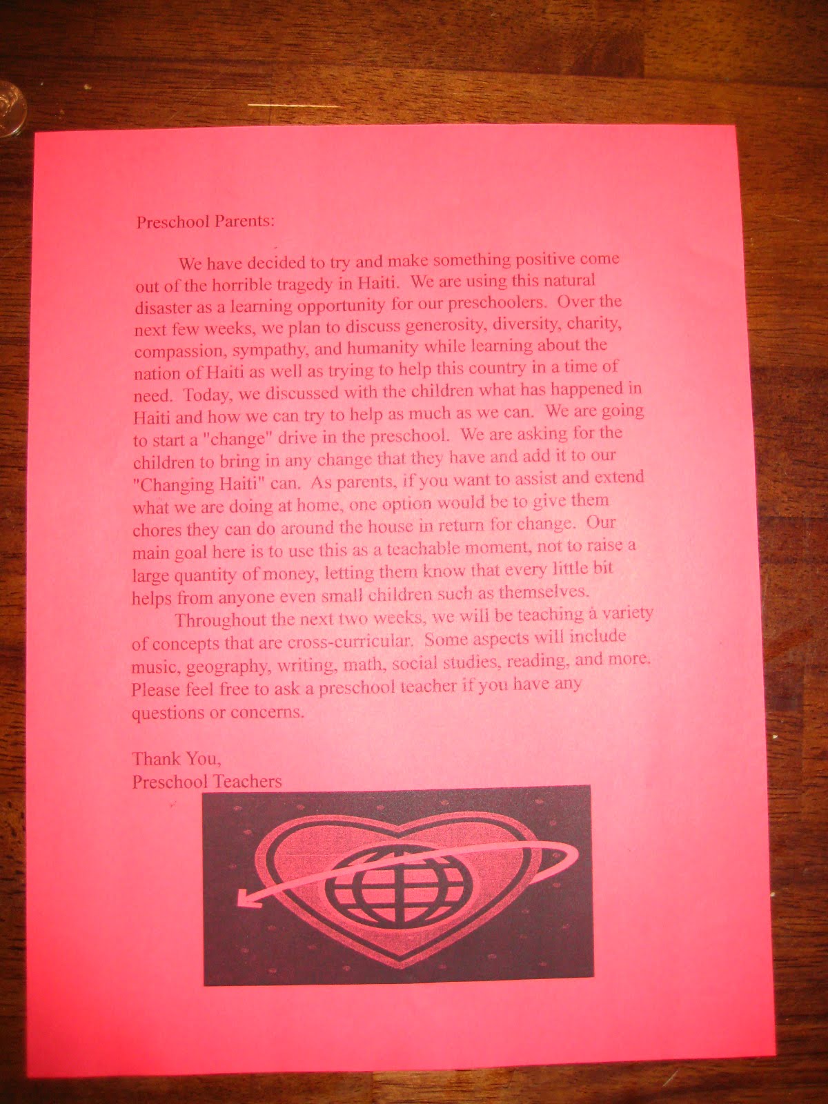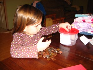 As part of this effort, the kids were encouraged to donate change to the families in Haiti who were in need. LOVE this idea. So we talked about it with Leila and she chose to give some of the money from her piggie bank, and over the last two weeks has been doing some little chores to earn more change to donate. I plan to keep this up, since we never got going on our Pennies for Peace, and continue to encourage Leila to give to others.