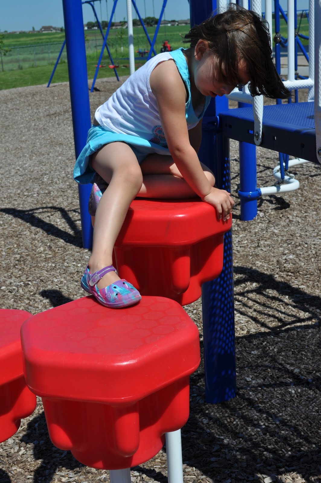 I love my kids, I love to please them, and I really love to surprise them. Today we went to visit a friend of mine and her babies for a while after lunch. Leila REALLY didn’t want to leave, but I made her. We had the talk that we frequently have these days when she is being forced to leave somewhere that she wants to stay. The talk goes something like this, “Leila, you know that Mommy wants to take you to fun places, but if you want to get to come back you need to be a big girl and leave when I say it is time to go.” After a couple of rounds she usually gets it, and today was one of those times. On the way home she said to me, “Mommy, I really didn’t want to go home.” So as we turned off towards our summer home and approached the elementary school that we drive past nearly everyday, I pulled into the parking lot and said to Leila, “How about we don’t go home? Wanna get out and play?” And so we did. I followed my girls around the playground trying to snap pictures and also keep Thea from taking off and out of my reach. Leila wasn’t interested in slowing down for a photo op, and I can’t blame her, this was stolen playground time. This wasn’t a typical planned trip to the park, this was an out of left field, pull into a parking lot and explore a playground she had never seen before kind of afternoon.