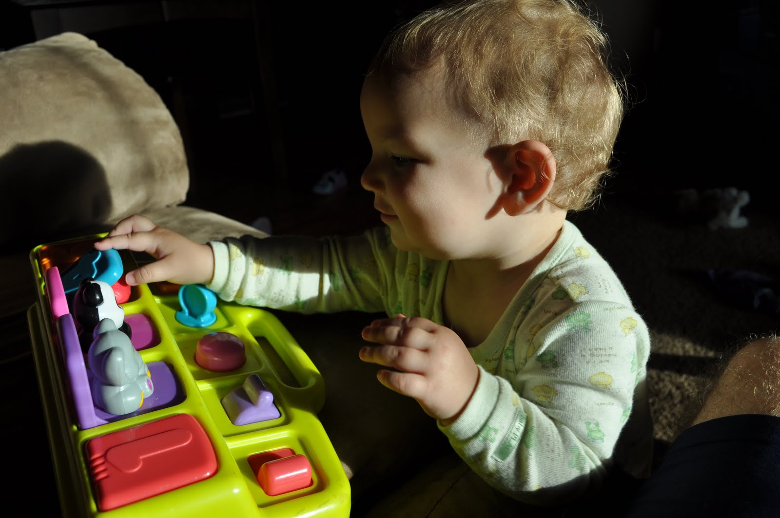 >I really like this picture that Cory took of Thea. She loves this toy and has gotten to the point where she can open and close the doors herself, and then she claps to celebrate. So stinkin cute!