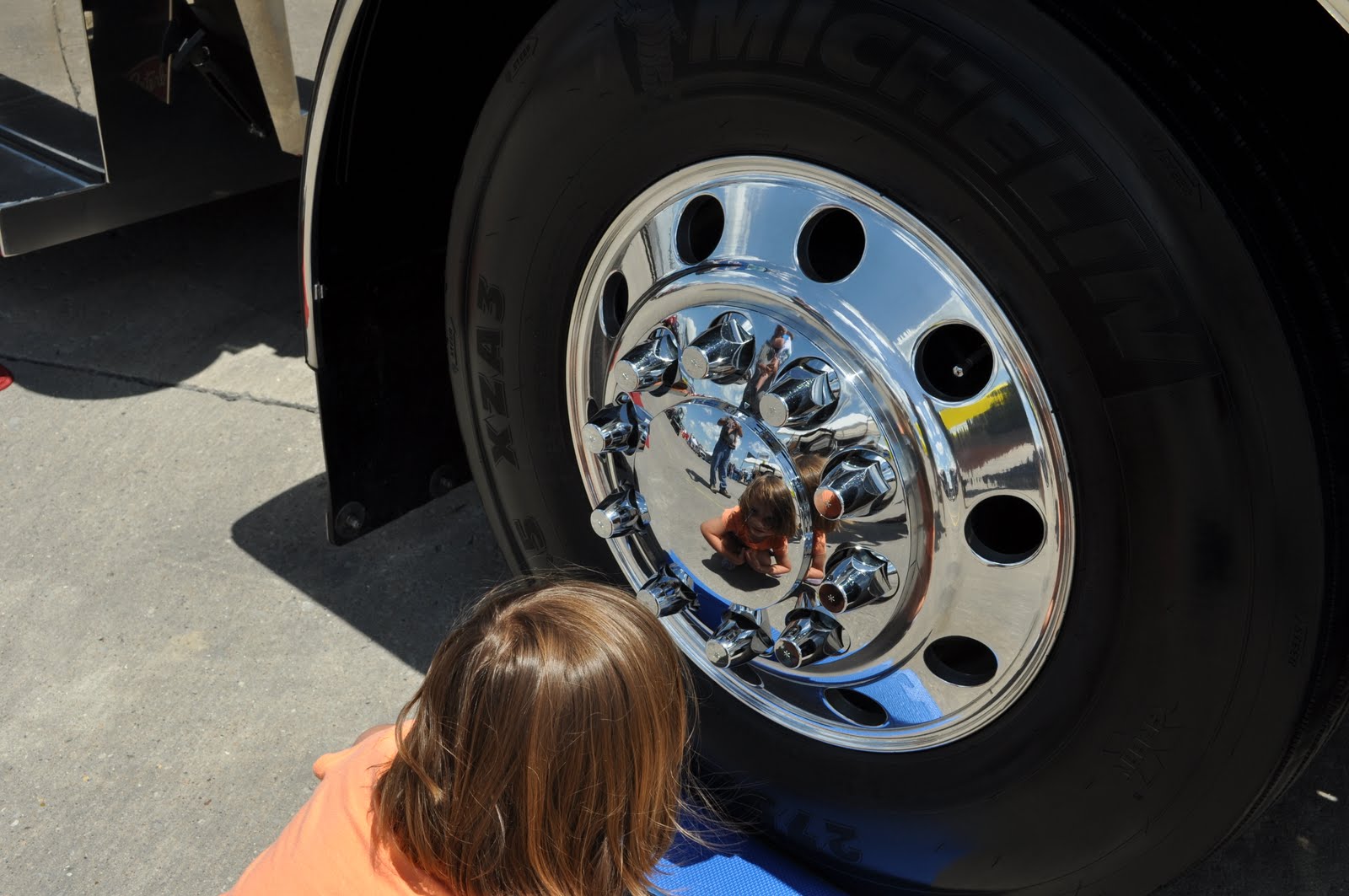 >Last week Andrea and I set out on a trip to Walcott to visit Papa Carey and take the kids to see the trucks at the Jamboree. Here are a few pictures from our fun day with Papa. Leila was so excited to go she started asking me as soon as she woke up, “when do we get to go to Papa’s work?!”