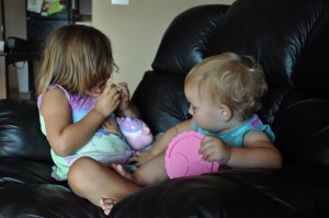 >One of these days Thea is going to be a master of following directions, and I will have Leila to thank for ordering her around. So far, Thea doesn’t resist too much, except for the fact that she is a baby and naturally isn’t great at following directions, which really frustrates her big sister. Sometimes it works out, and it is pretty cute.