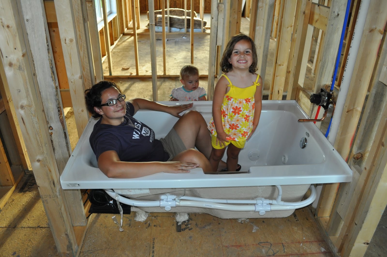 >I feel like it is two steps forward and three steps back with the house. We are very happy so far, but the progress has been slow, and the latest set back was this weekend with the insulation. We upgraded the insulation in the house from the typical bats of fiberglass to a blown in insulation that adds additional R-value. When we checked the house out on Friday, we saw that the insulation upgrade wasn’t completed. So after all of the drywall was up on Sunday night, most if it had to come down on Monday to switch out the insulation. We are on track to have the house done by October 11th, and we will be working in some time to paint bedrooms next weekend. Though the painters will paint any color you want, it costs extra and we are cheap, so we are doing our “custom” colors on our own!