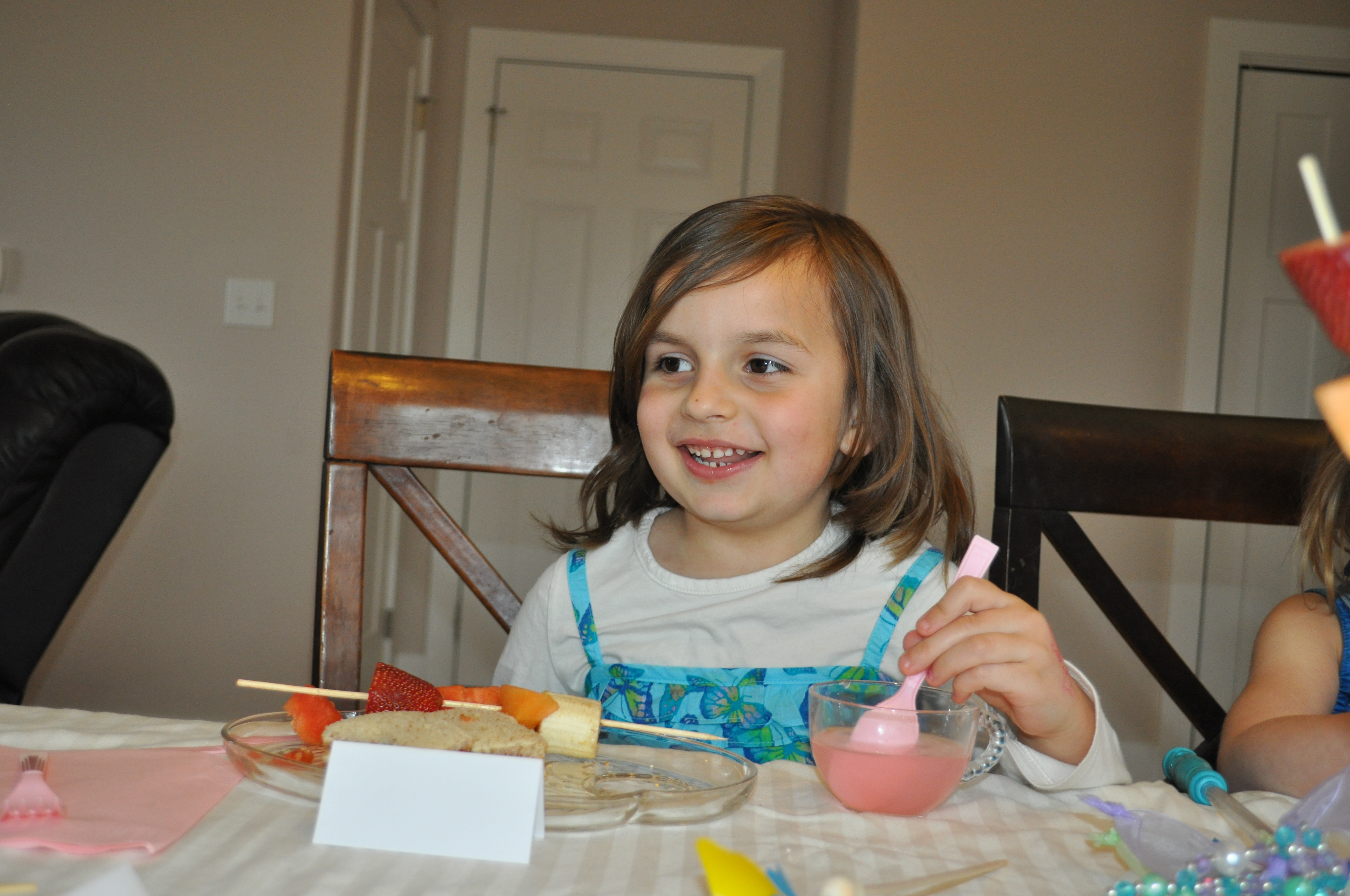 I wanted to do something special to mark the big event of a 5th birthday, and a tea party seemed to be the perfect way to have a small celebration without breaking the bank. I purchased little tea cup and plate sets for a dollar each at a second hand store, and loaded up on other supplies at the dollar tree. When the day came around, Cassie helped make everything happen.
