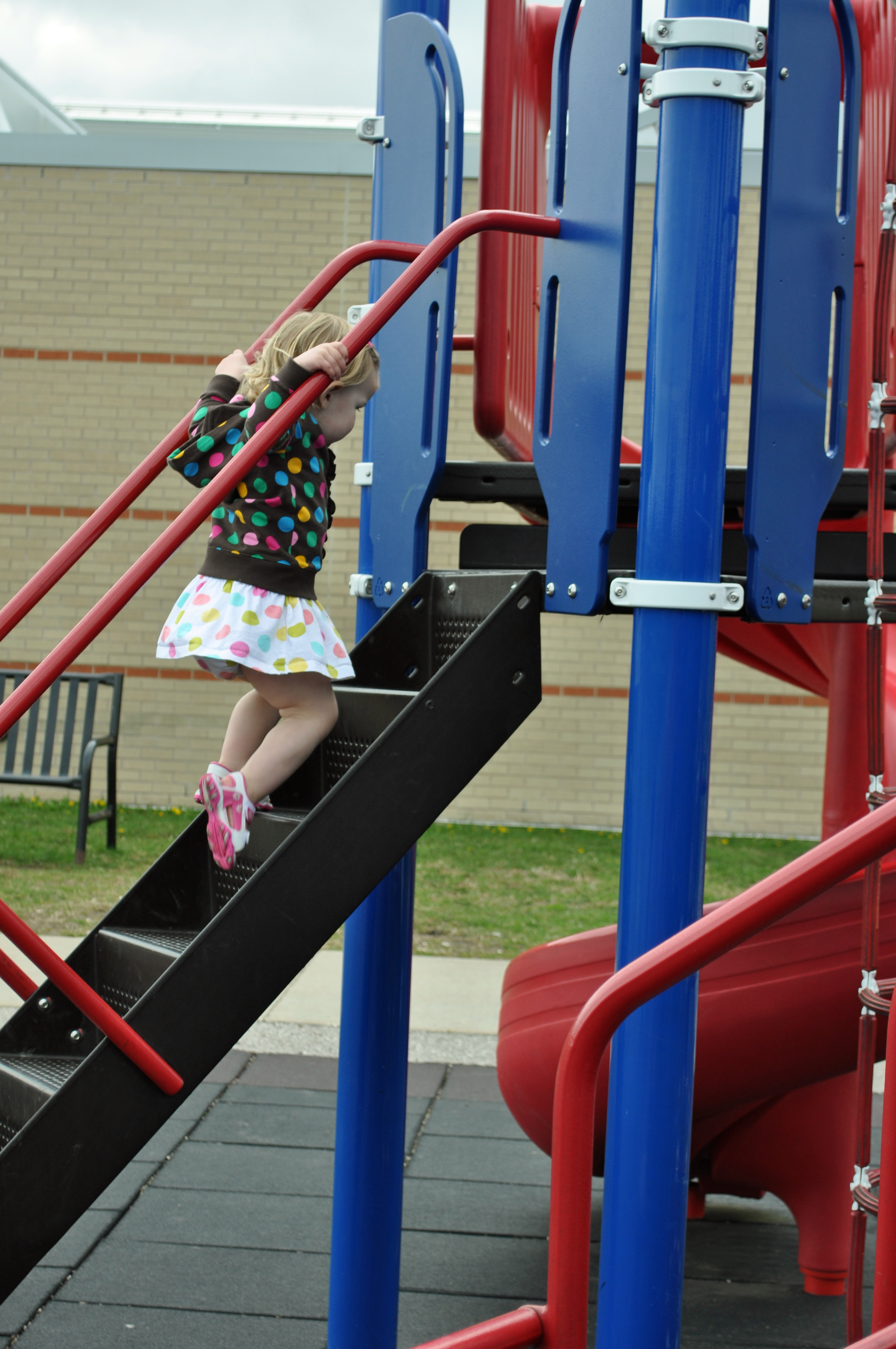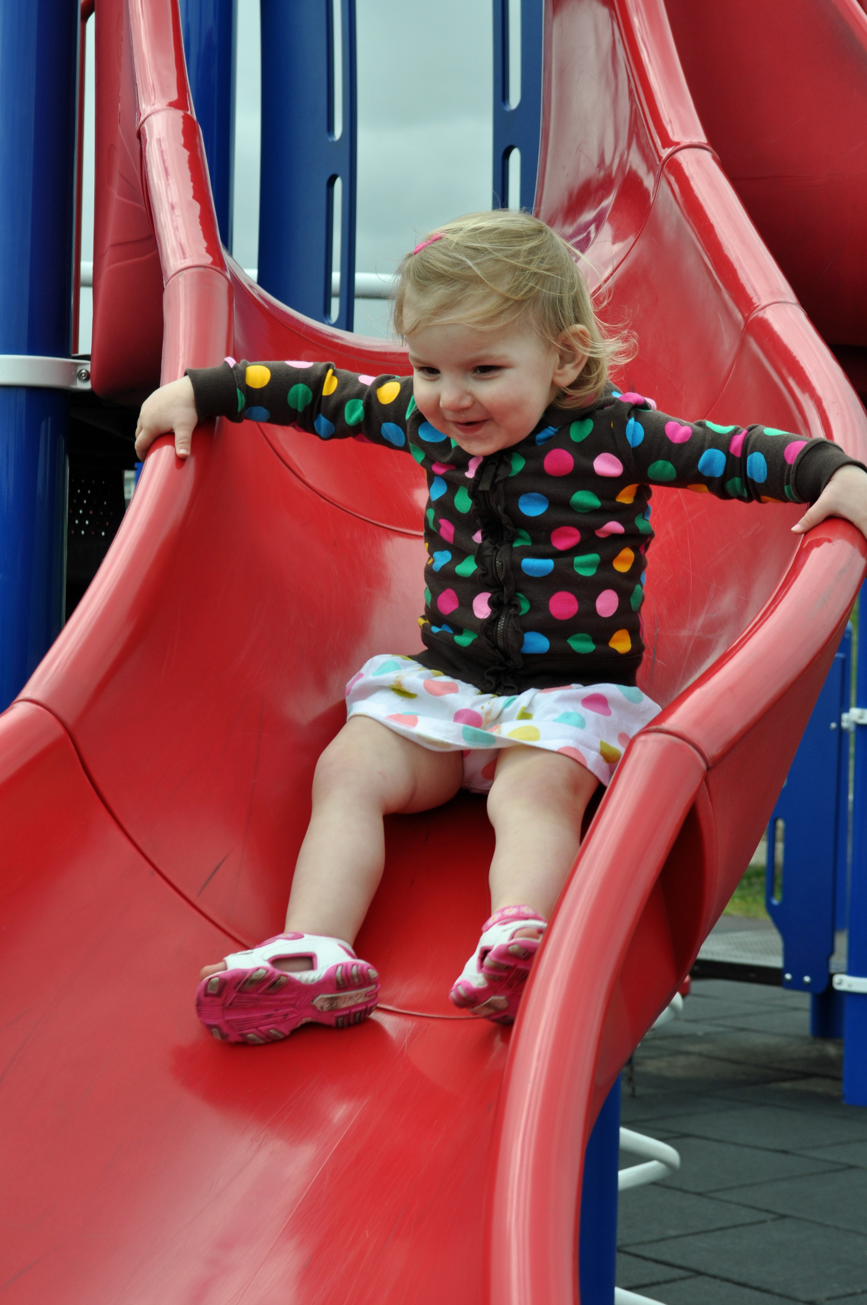 Ever since Thea was a baby I noticed lots of differences between her and her sister. Of course, they have a lot in common but Thea is most definitely her own girl. Even when she was barely walking last spring, she was climbing. The girl has yet to meet a slide that she isn’t willing to take on.