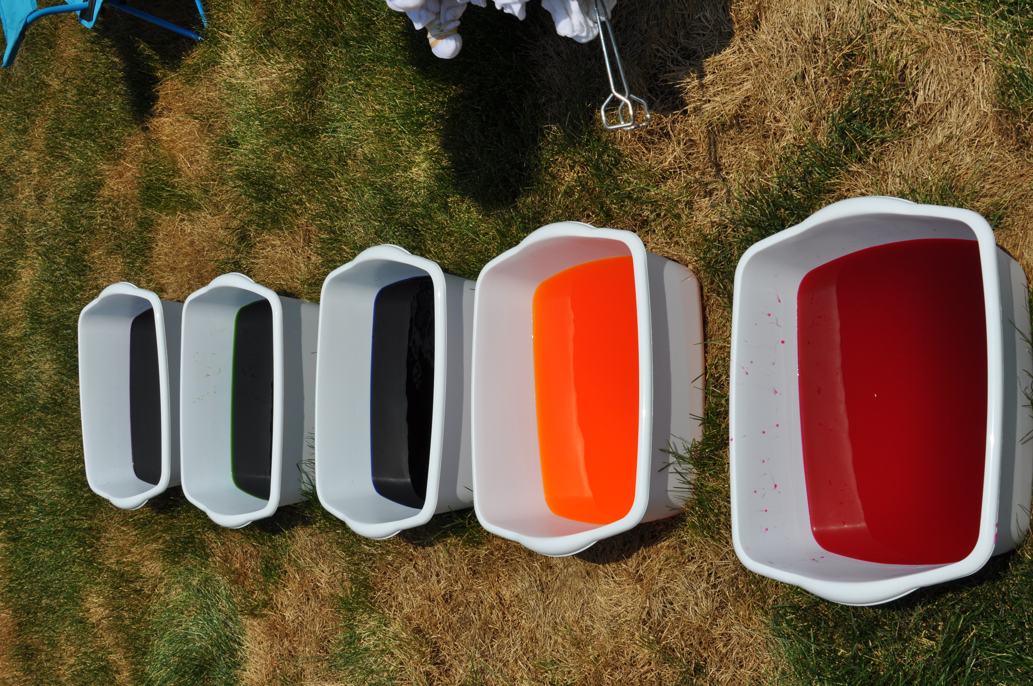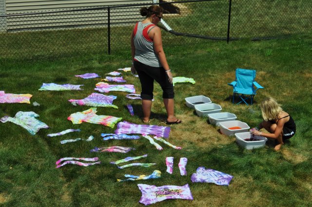 We are always looking for fun things to do, and what better way to spend a 100 degree Saturday afternoon than tie dying T-shirts in the yard!