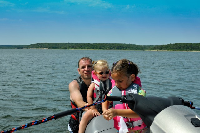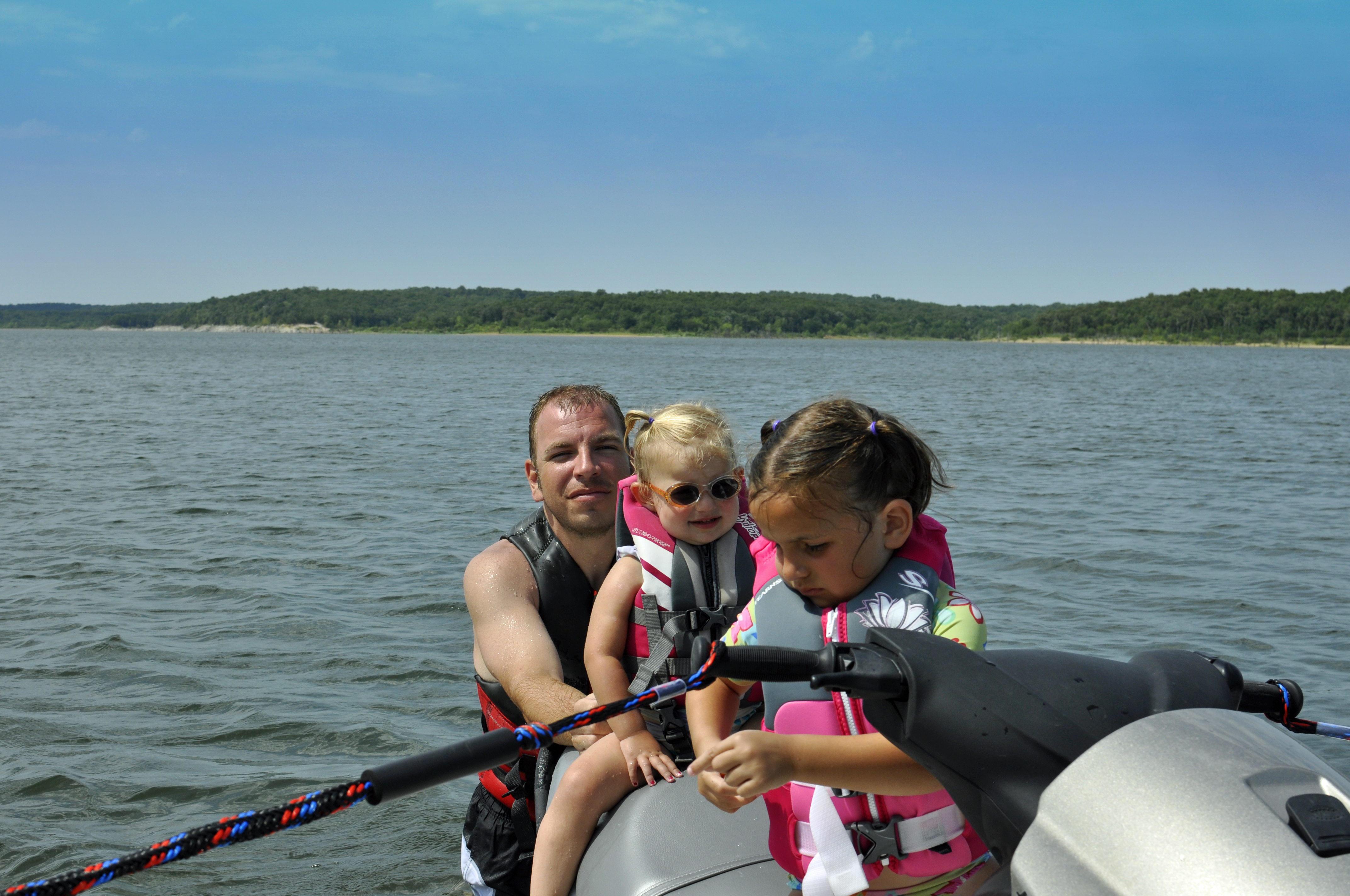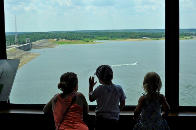 On the hottest day of the trip, we decide to keep the kids indoors so they go to watch Cory water-ski and Cassie knee-board from the comforts of the Truman Lake Dam Observatory. An excellent view!