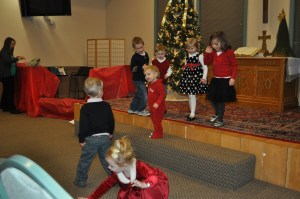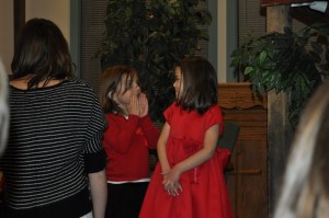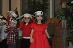 >For about a week leading up to Leila’s program she made sure to remind Cory and I every day that she was going to sing very loud so that Santa would come at the end. I thought this was pretty funny considering this is the 3rd year of her Christmas performance, and Santa is always there but she has never cared. This year is a different ball game. Even though we have already visited with Santa at the mall and delivered the special toy requests I think she wanted to get some more face time with the big guy.