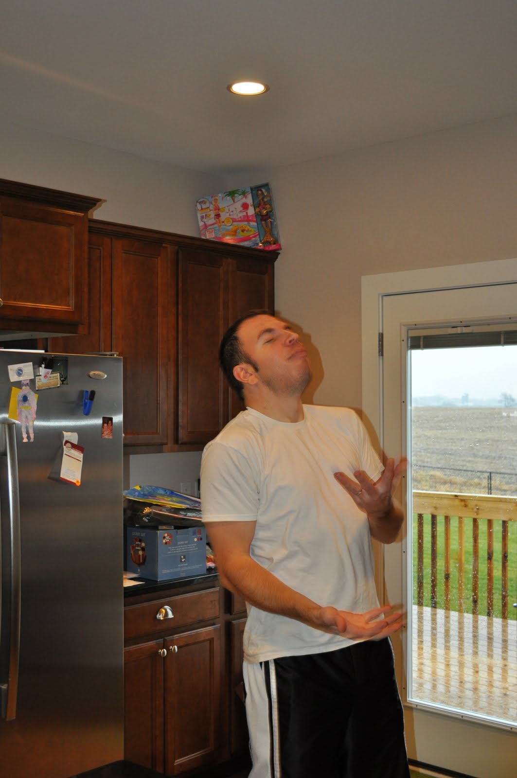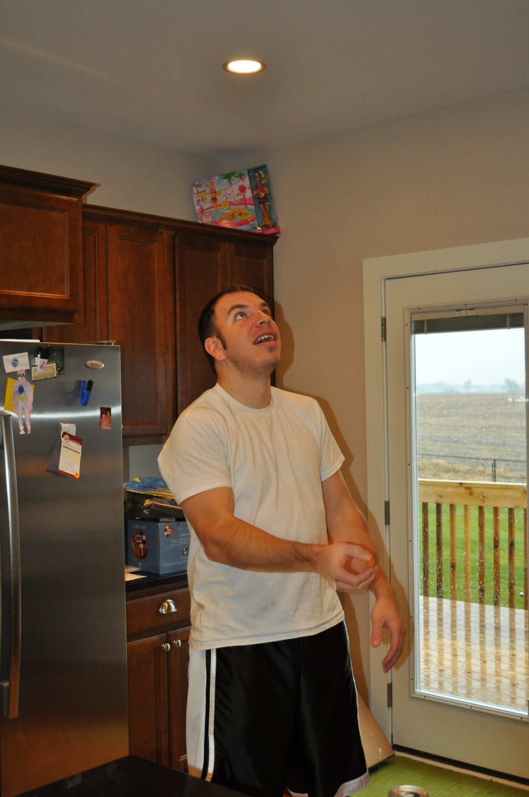 >This guy is the star of the show at the Coobs house. Nothing like dinner time entertainment watching Daddy try to catch chicken nuggets in his mouth!